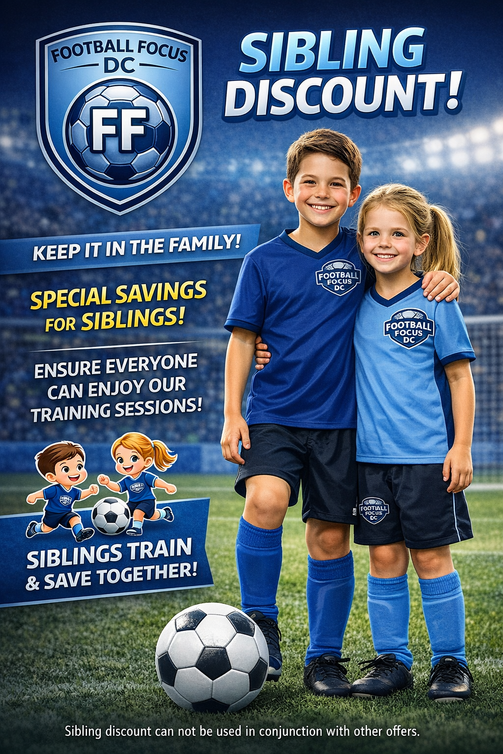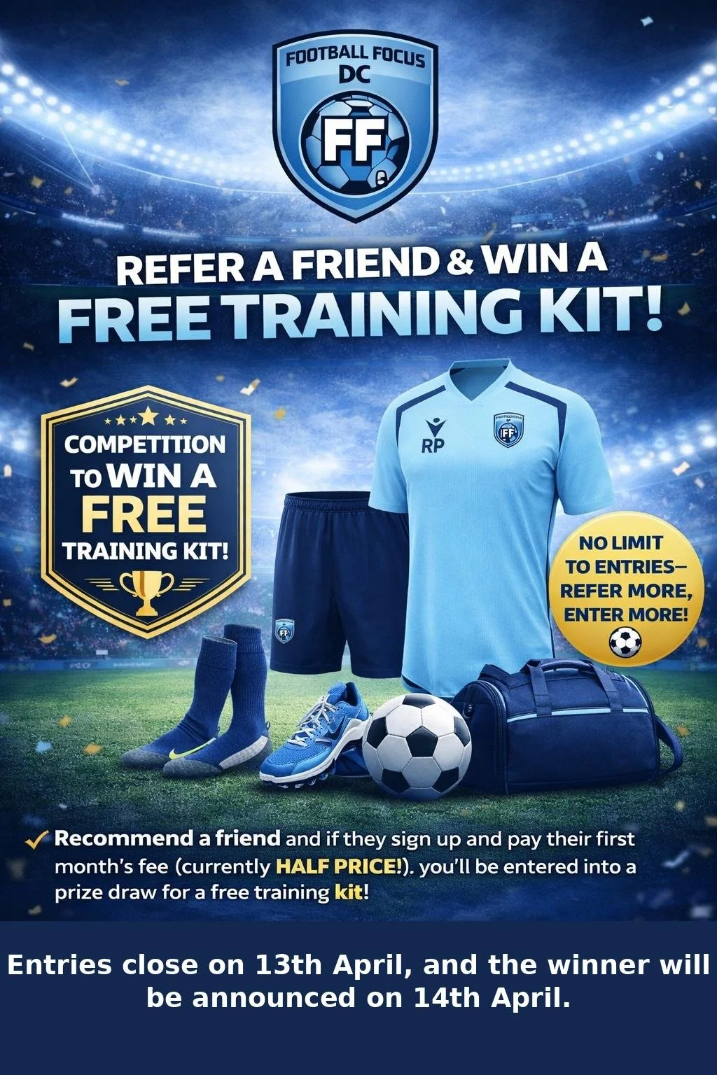 Welcome to Football Focus DC, we’re all about giving every young player the chance to enjoy football, improve their skills, and grow with confidence. Our sessions are carefully tailored by age and ability, creating a positive and fun environment where players can thrive. Whether it’s technical development, teamwork, or simply loving the game, we’re here to support every child on their football journey.